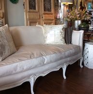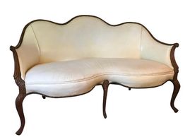 French Style Sofa reupholstered in a soft creamy velvet.